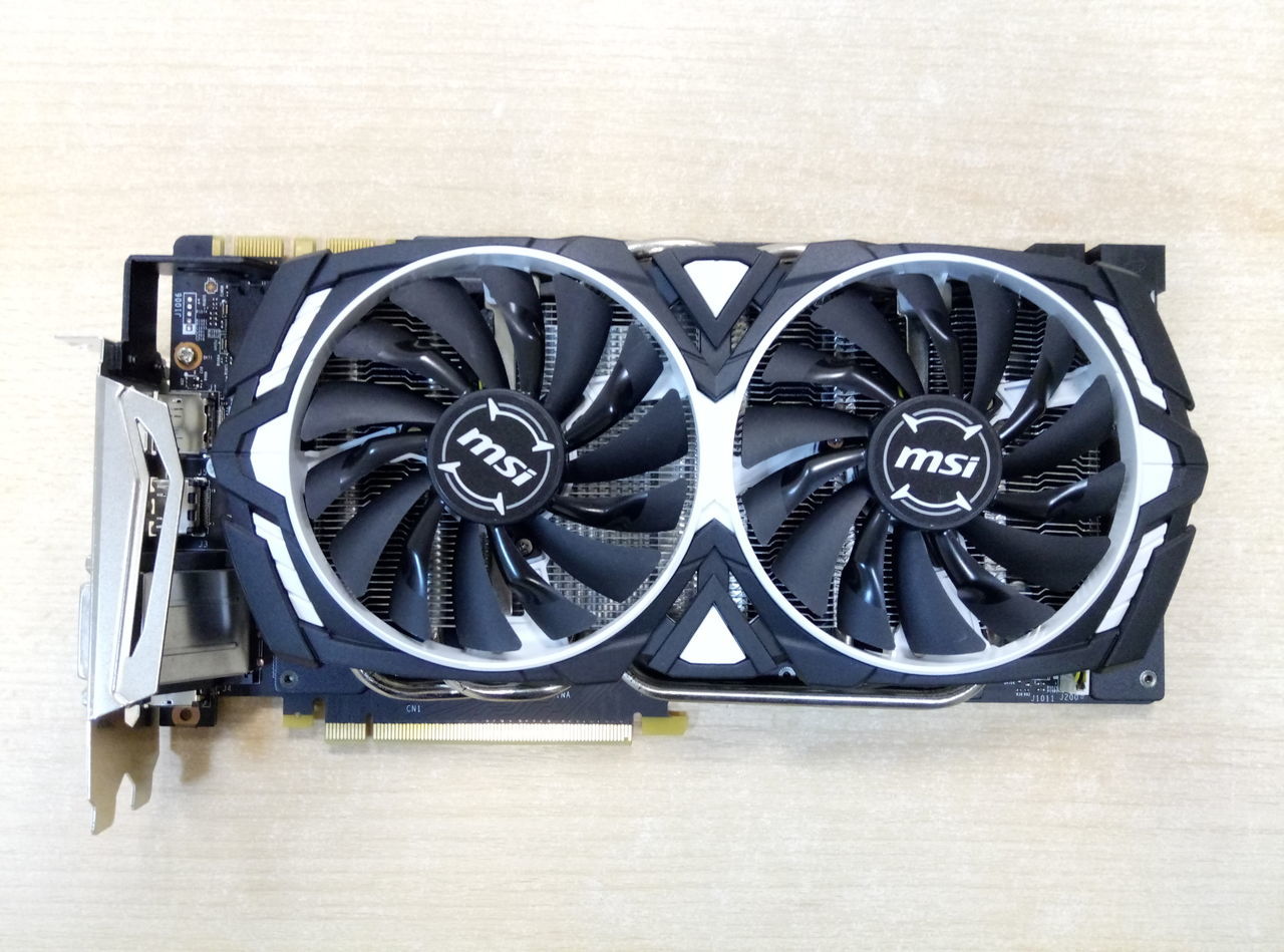 В верхней части карты доминирует светящийся логотип MSI и три видимые тепловые трубки (две 6 мм и одна 8 мм). Шести- и восьмиконтактные разъемы вспомогательного питания расположены на торце карты и повернуты на 180 °.Черно-красная цветовая схема MSI должна быть вам знакома, она похожа на форму карты.