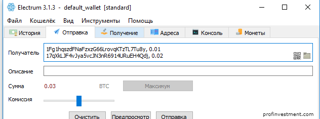 Если человек хочет получить комиссию с помощью Электрума, он должен нажать на вкладку «отправить».В области «Pay To» пользователь должен ввести биткойн-счет или скопировать его из своего буфера обмена, а затем нажать «Отправить». Им будет предложено ввести пароль, который они создали. Человек должен сказать, что операции с принимающими карманами называются их операциями с биткойнами.