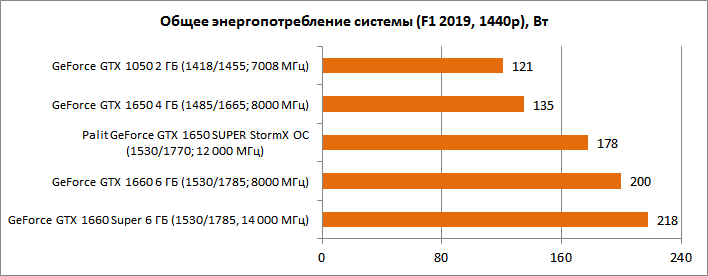 Энергопотребление по сравнению с 56 видеокартами, протестированными в сети.