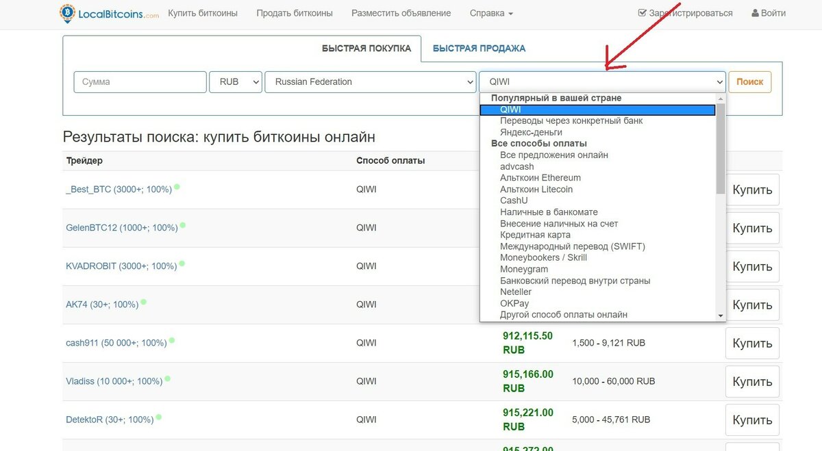 Платформа Localbitcoins предлагает большое количество способов оплаты, таких как банковские переводы, кредитные карты, PayPal, альткоины и многое другое.