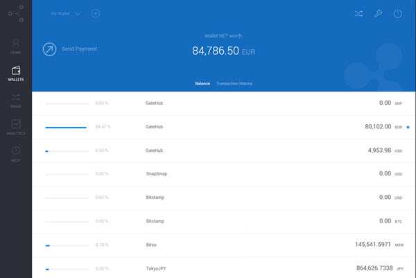 Кошелек Ripple Gatehub позволяет работать с токенами XRP непосредственно в браузере. Для того, чтобы начать отправлять или принимать деньги, нужна регистрация и, для расширения возможностей, верификация на сайте. Здесь Рипл можно покупать и продавать за доллары, евро, биткоины, Эфир.