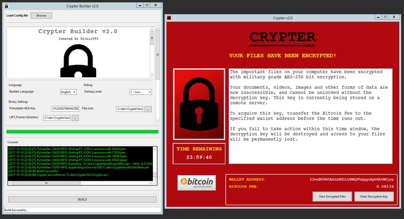 Пример снимка экрана веб-службы шифрования вредоносных программ DIY: