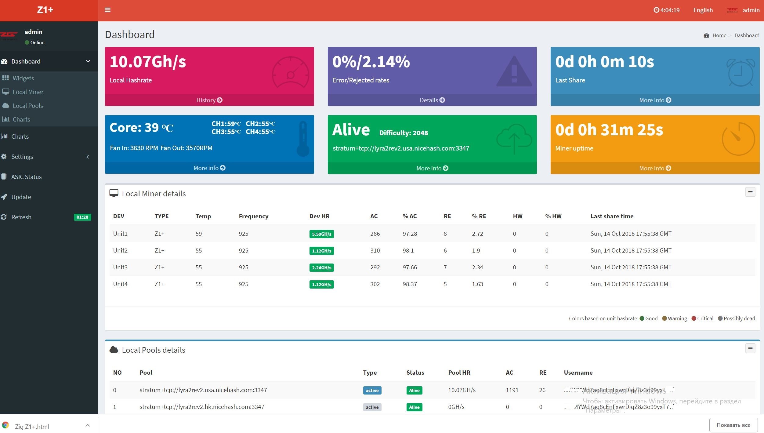 Выплаты производятся каждые 12 часов для остатков более 0.Эквивалент 0001 BTC. Вы можете майнить только Vertcoin, или вы можете использовать автоматическое переключение, чтобы майнить самую прибыльную монету.